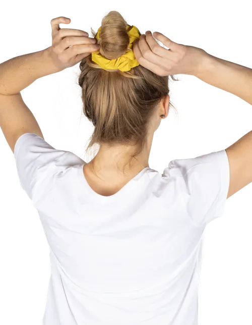 Dit trendy haaraccesoire can compleet zelf ontworpen worden om met je favoriete outfits te matchen. De Scrunchie wordt niet alleen door trendsetters gebruikt om verschillende haarstijlen te creeeren maar wordt vaak ook om de pols gedragen. Dankzij het aangename materiaal en de zachte structuur die ervoor zorgt dat het haar niet geknikt wordt, geeft het het haar de bescherming die het verdient.